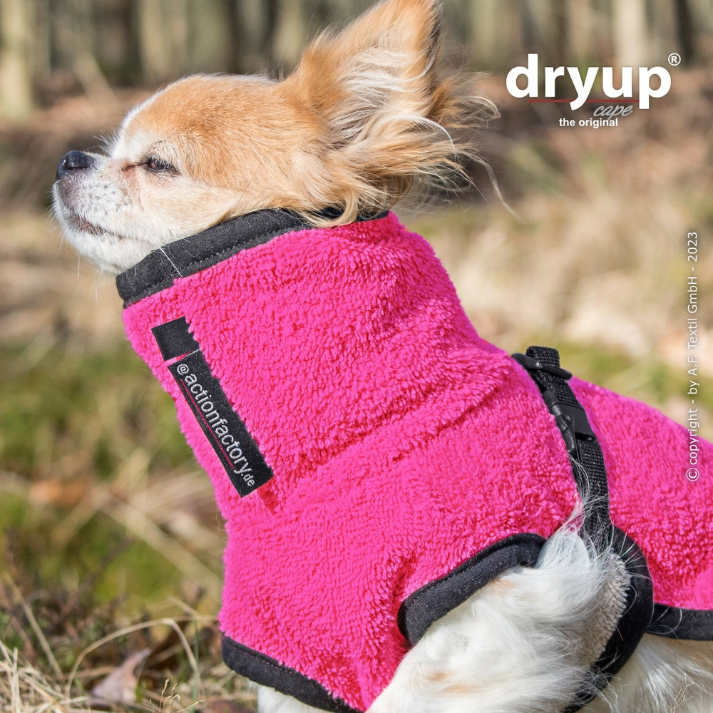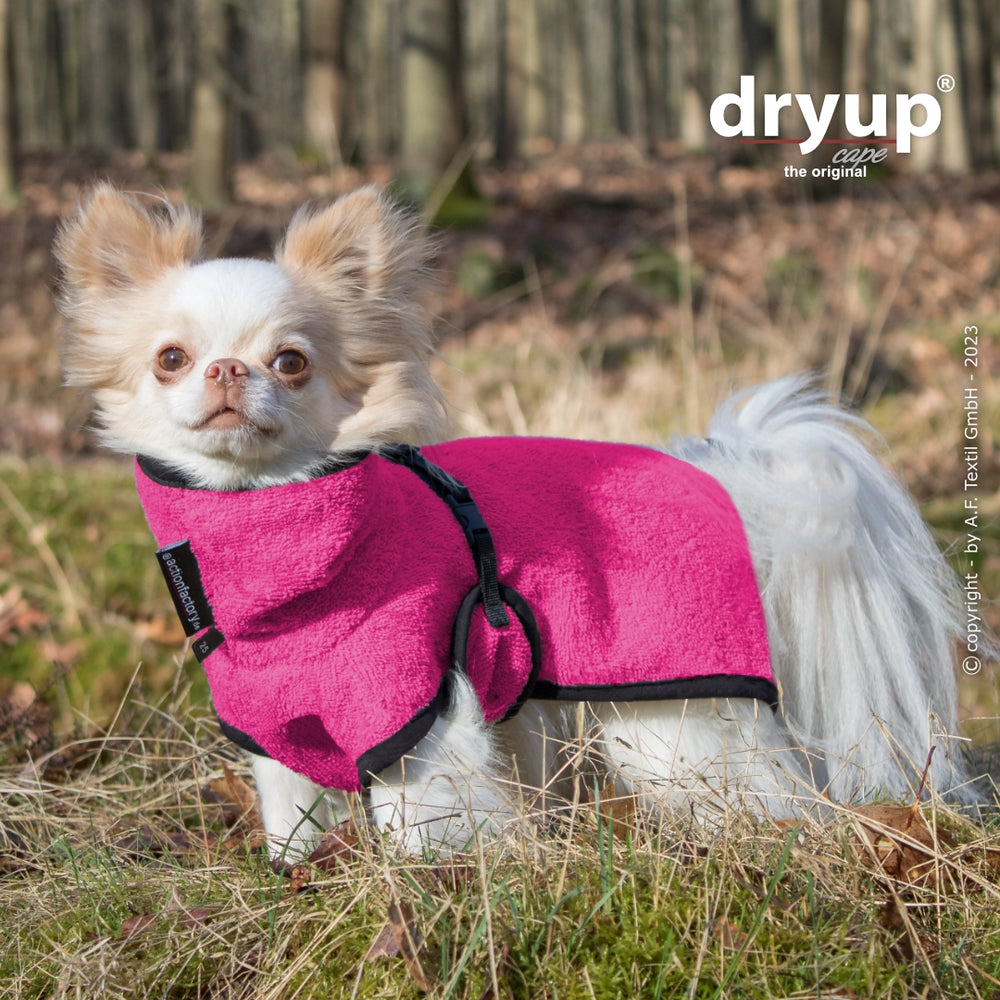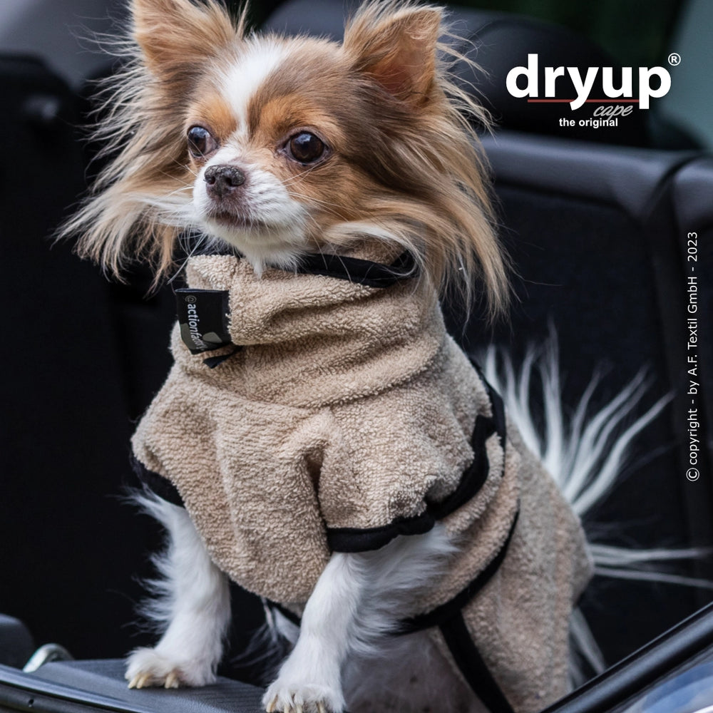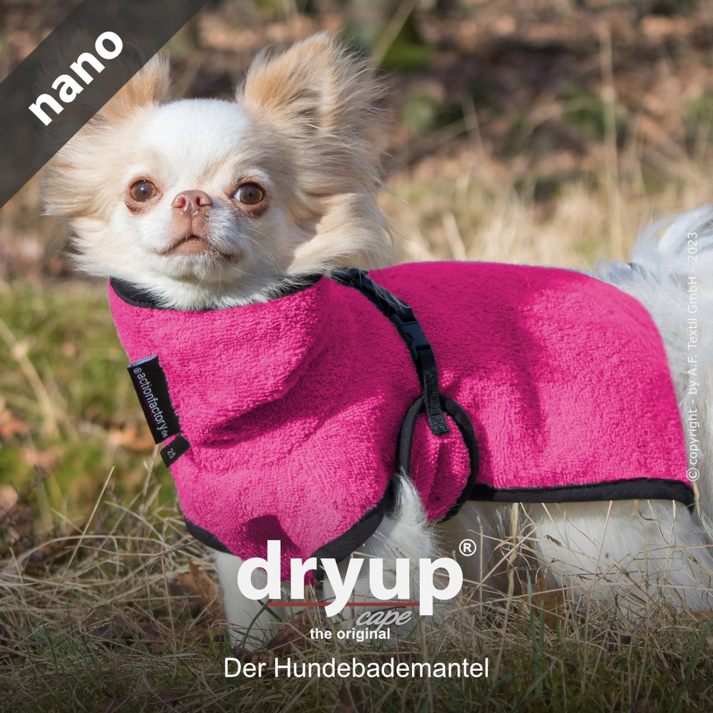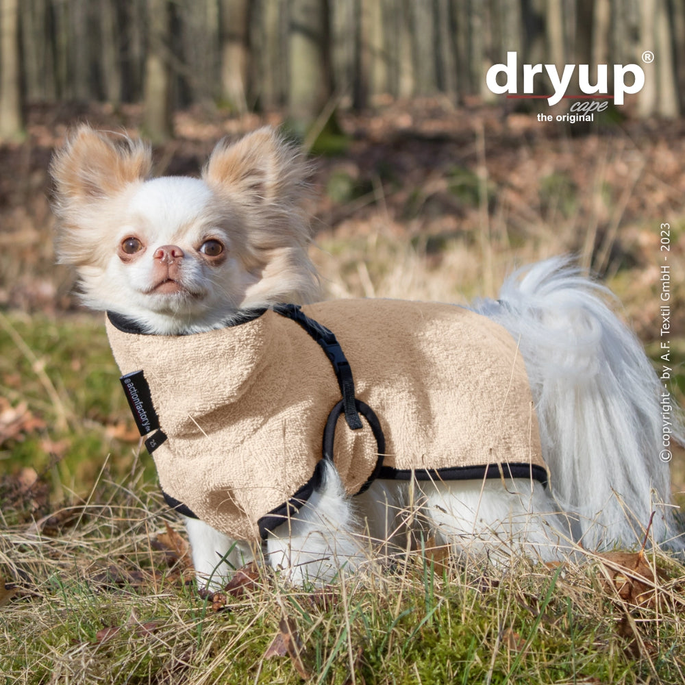 Der dryup® cape nano ist der originale Hundebademantel für kleine Hunde und sorgt für ein schnelles, komfortables und effektives Trocknen nach dem Baden, Schwimmen oder Spaziergang im Regen. Dank perfekter Passform, hochwertiger Baumwolle und durchdachter Konstruktion bleibt dein Hund angenehm warm und trocken – ganz ohne Stress.