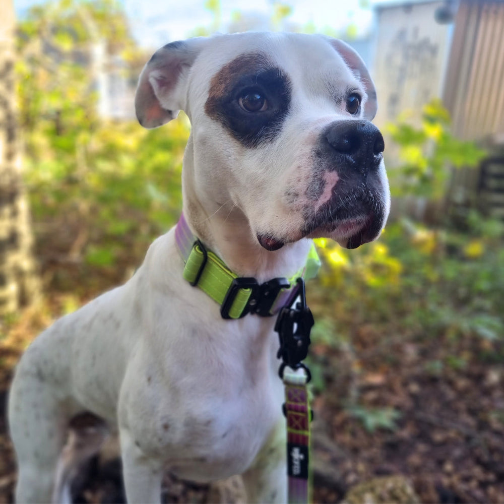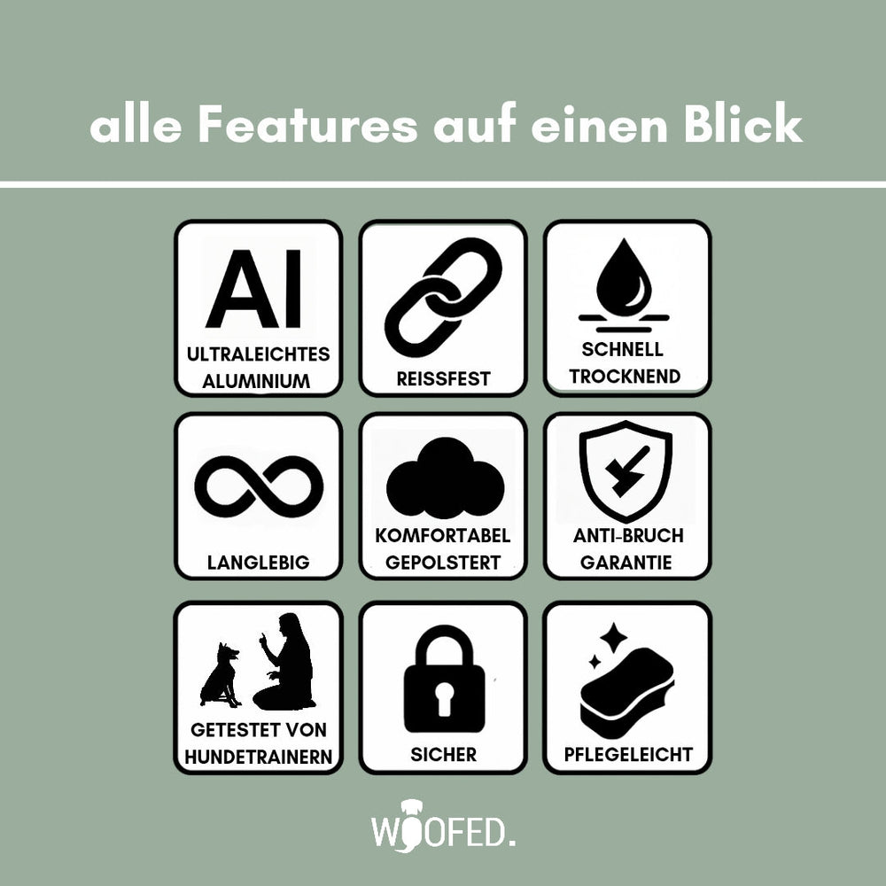 Der stabile Aluminiumverschluss bietet festen Halt und verhindert ein unbeabsichtigtes Öffnen. Ergänzt wird dies durch einen robusten D-Ring, der eine sichere Leinenbefestigung ermöglicht – selbst bei aktiven und neugierigen Hunden.