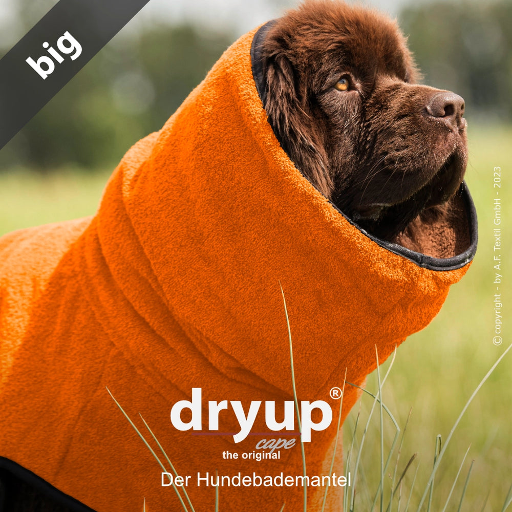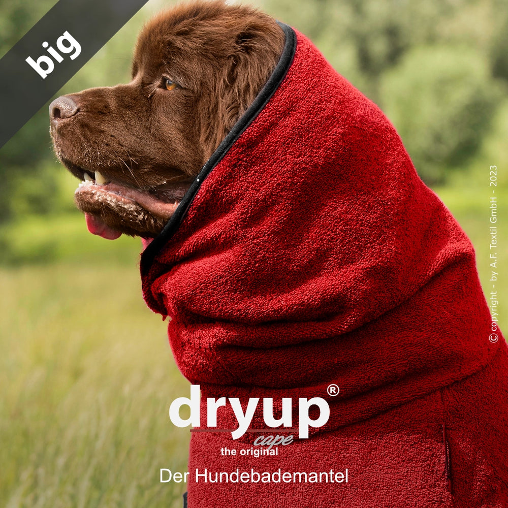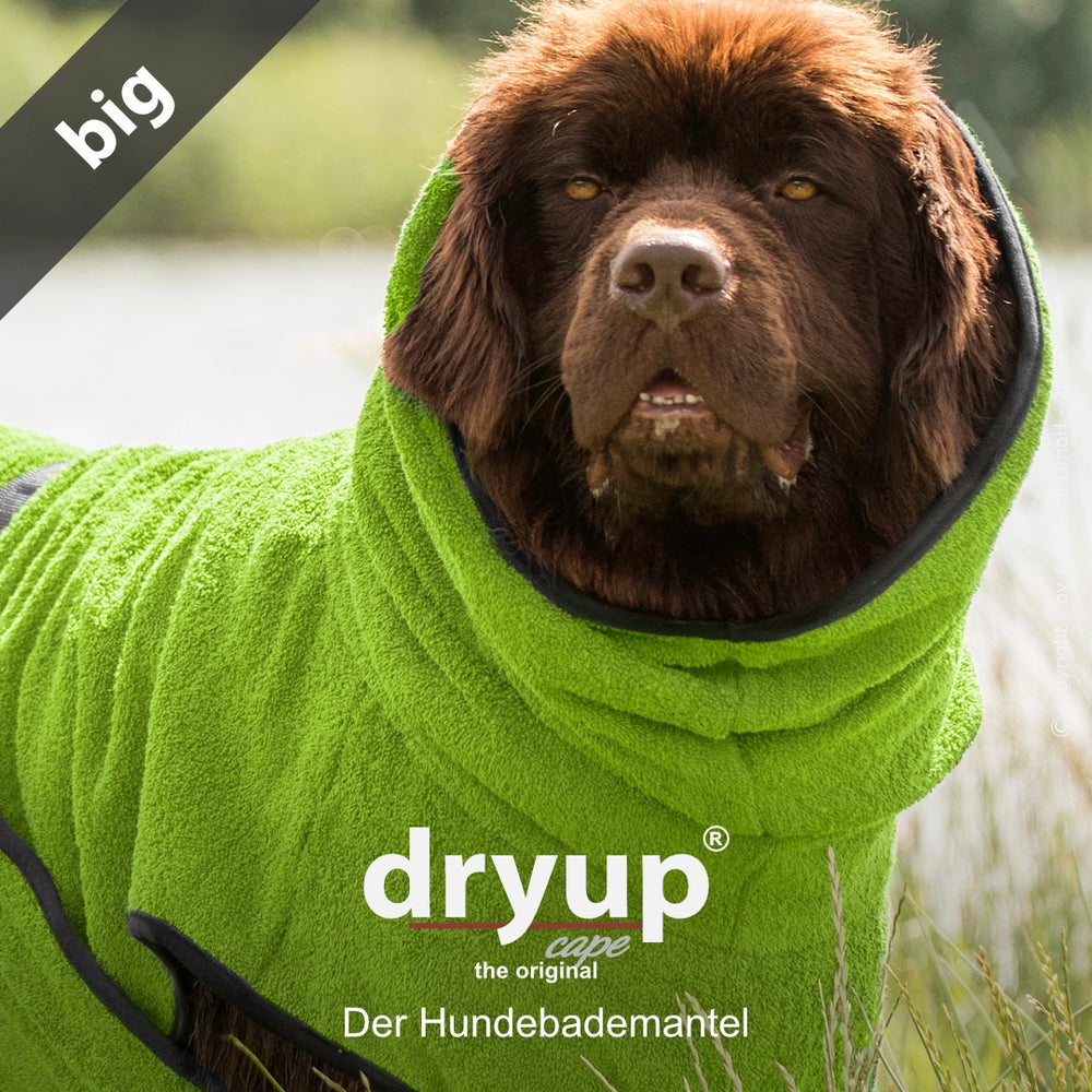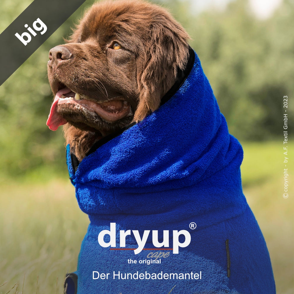 Der Original Hundebademantel DRYUP® CAPE überzeugt durch seine perfekte Passform und ist speziell für unterschiedlichste Hunderassen und Größen optimiert. Die Variante Big eignet sich ideal für große Hunde und sorgt nach dem Baden, Schwimmen oder Spaziergang im Regen für eine schnelle und zuverlässige Trocknung.