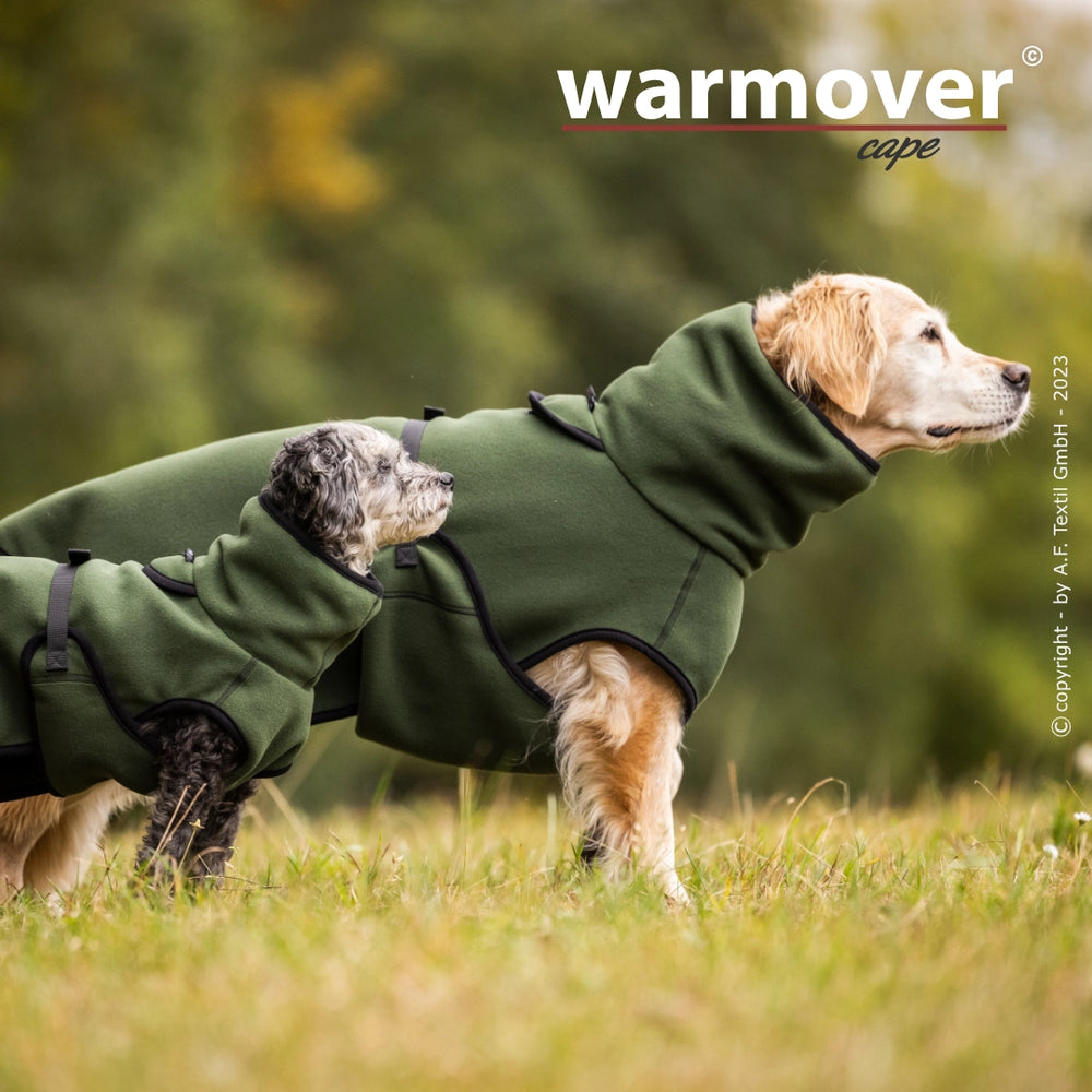 Mit dem Warmover© Cape bleibt dein Hund bei kühlem Wetter angenehm warm, geschützt und beweglich – ideal für Spaziergänge, Training und Alltag in der Übergangszeit.