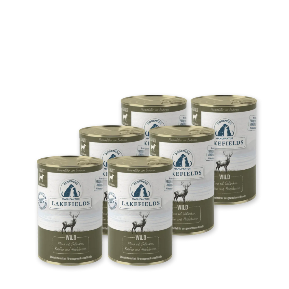 Das Nassfutter-Menü Wild ist ein hochwertiges Premium-Alleinfuttermittel für Hunde. Die ausgewogene Rezeptur kombiniert frisches Muskelfleisch vom Hirsch mit regionalem Gemüse, Obst und ausgewählten Kräutern. Alle Zutaten werden in 100 % Lebensmittelqualität verarbeitet und sorgen für eine natürliche, schmackhafte und vollwertige Mahlzeit.
