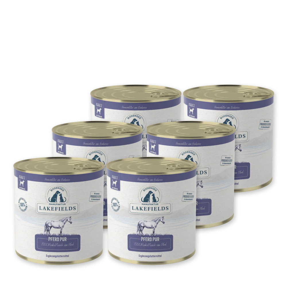 Da Pferd PUR eine reine Fleischbasis ist, kannst Du das Nassfutter flexibel ergänzen – zum Beispiel mit gekochten Kohlenhydraten, frischem Gemüse, Mineralfutter oder hochwertigen Ölen. So stellst Du Dir die Mahlzeit genau so zusammen, wie es zu Deinem Hund passt.