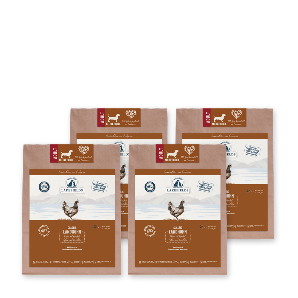 Das Lakefields Classic Trockenfutter Huhn Adult Mini ist die ideale Wahl für ausgewachsene, kleine Hunderassen, die täglich eine hochwertige, ausgewogene und natürliche Mahlzeit erhalten sollen. Die Rezeptur kombiniert frisches Hühnerfleisch aus artgerechter Haltung mit Gemüse, Obst und Kräutern – selbstverständlich ohne Getreide, Zucker oder künstliche Zusatzstoffe. Entwickelt von Tierärzten und Ernährungswissenschaftlern ist das Futter optimal auf die Bedürfnisse kleiner, ausgewachsener Hunde abgestimmt.
