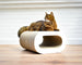 LE TRONC ist kein reiner Kratzbaum. Die gebogene, offene Form lädt Deine Katze zum Intensivkratzen, Ausstrecken und Liegen ein. Die innere Öffnung wird schnell zum Lieblingsversteck und bietet gleichzeitig Platz zum Durchspielen. Dank der beidseitigen Nutzbarkeit kann eine Katze oben liegen, während eine andere im Inneren Ruhe oder Spiel findet – ideal für Mehrkatzenhaushalte.