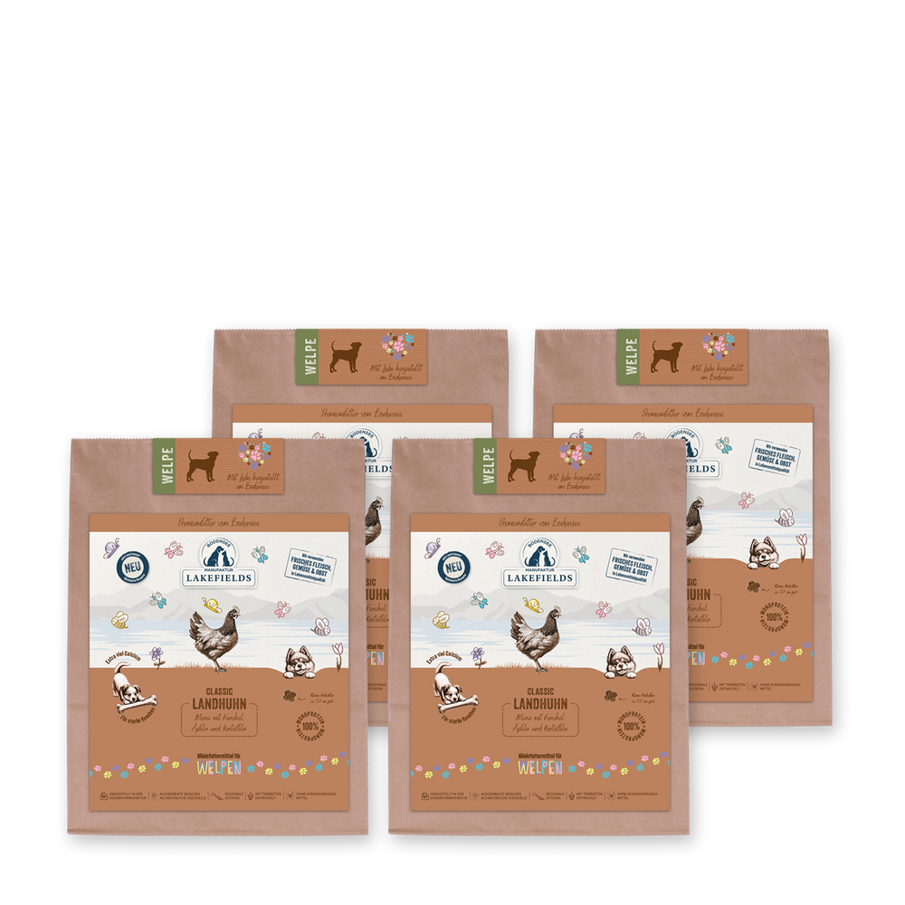 Das Lakefields Classic Trockenfutter Huhn für Welpen bietet einen optimalen Start ins Hundeleben. Die ausgewogene, artgerechte Rezeptur besteht aus hochwertigen Zutaten in 100 % Lebensmittelqualität. Enthalten ist frisches Huhn aus artgerechter Haltung, ergänzt mit Gemüse, Obst und Kräutern aus der Bodenseeregion. Auf Getreide, Zucker, Füllstoffe und unnötige Zusatzstoffe wird konsequent verzichtet. Die Rezeptur wurde von Tierärzten und Ernährungswissenschaftlern entwickelt, um den besonderen Nährstoffbedarf in der Wachstumsphase gezielt zu unterstützen.